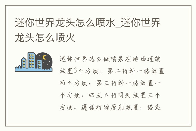 迷你世界龍頭怎么噴水_迷你世界龍頭怎么噴火