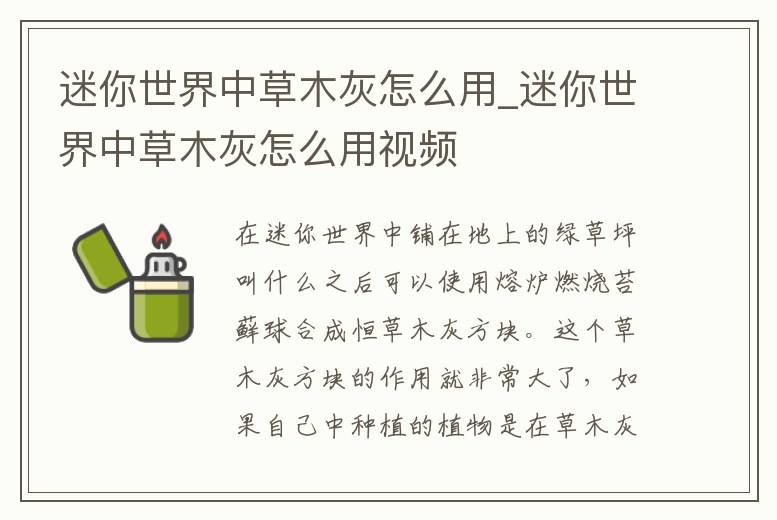 - 迷你世界中草木灰怎么用_迷你世界中草木灰怎么用視頻