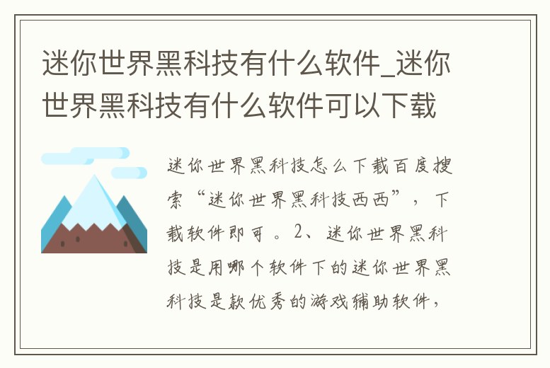 迷你世界黑科技有什么軟件_迷你世界黑科技有什么軟件可以下載