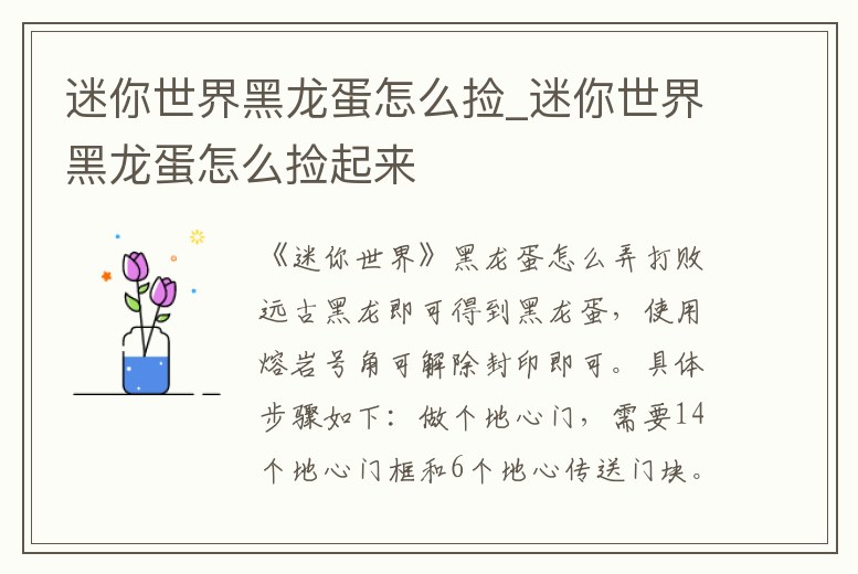 迷你世界黑龍蛋怎么撿_迷你世界黑龍蛋怎么撿起來(lái)