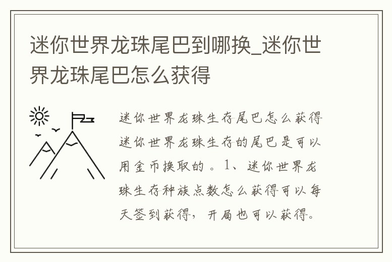 2、迷你世界龍珠生存中的尾巴是怎么得來的