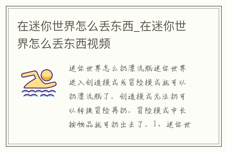 - 在迷你世界怎么丟東西_在迷你世界怎么丟東西視頻