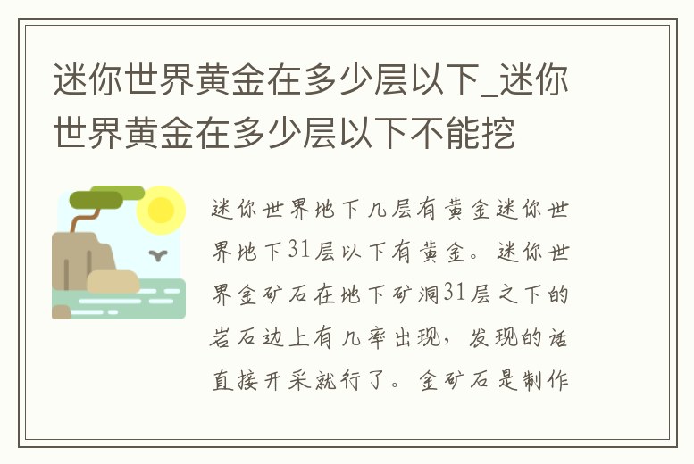 迷你世界黃金在多少層以下_迷你世界黃金在多少層以下不能挖