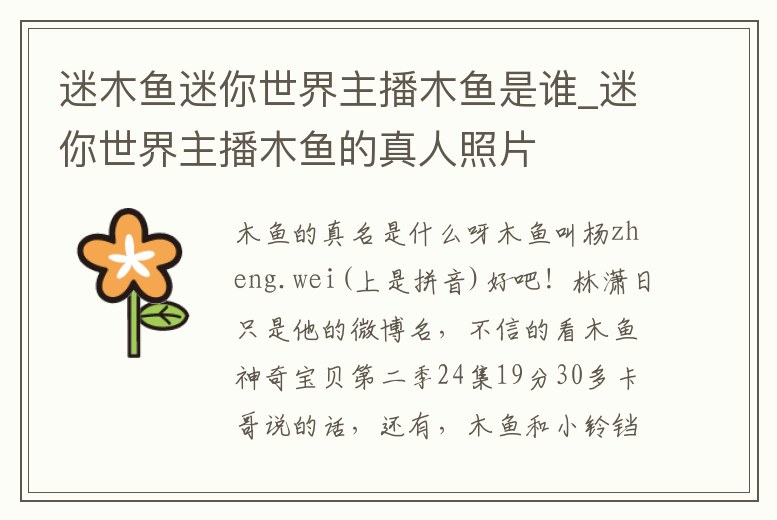 迷木魚迷你世界主播木魚是誰_迷你世界主播木魚的真人照片