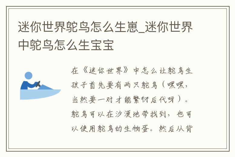 迷你世界鴕鳥怎么生崽_迷你世界中鴕鳥怎么生寶寶