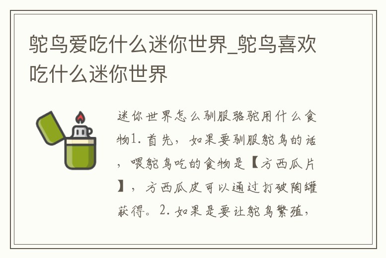 鴕鳥愛吃什么迷你世界_鴕鳥喜歡吃什么迷你世界