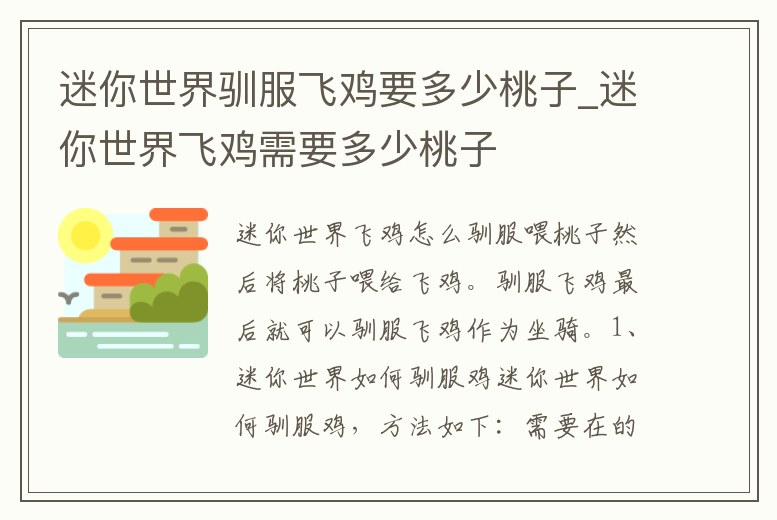 迷你世界馴服飛雞要多少桃子_迷你世界飛雞需要多少桃子