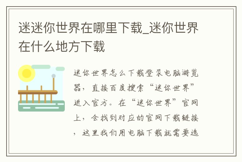 迷迷你世界在哪里下載_迷你世界在什么地方下載