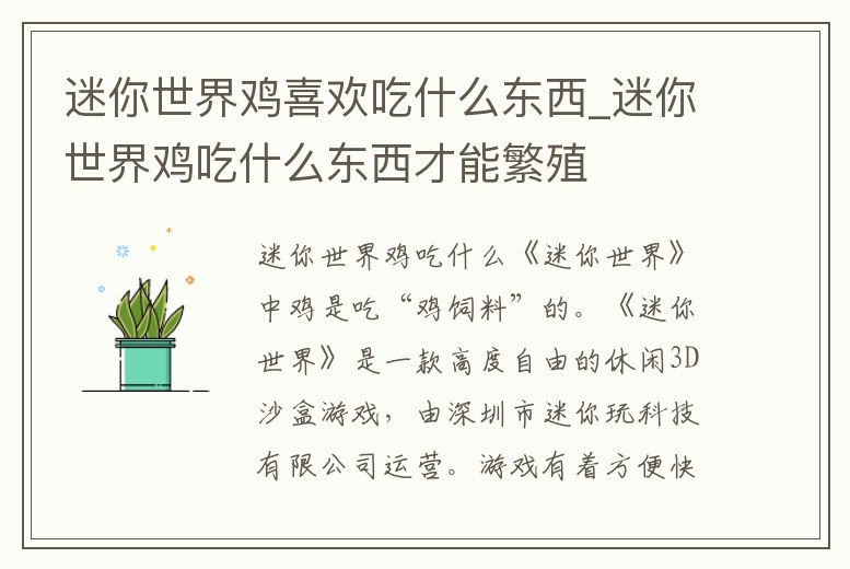 迷你世界雞喜歡吃什么東西_迷你世界雞吃什么東西才能繁殖