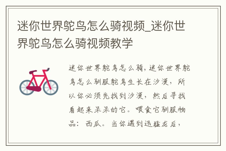 迷你世界鴕鳥怎么騎視頻_迷你世界鴕鳥怎么騎視頻教學(xué)