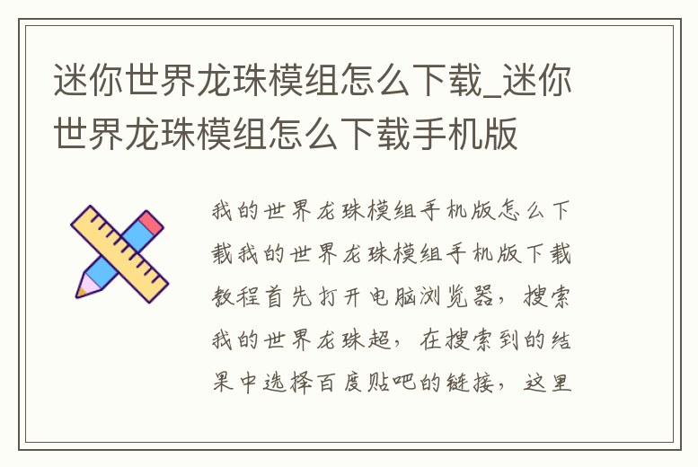 迷你世界龍珠模組怎么下載_迷你世界龍珠模組怎么下載手機(jī)版
