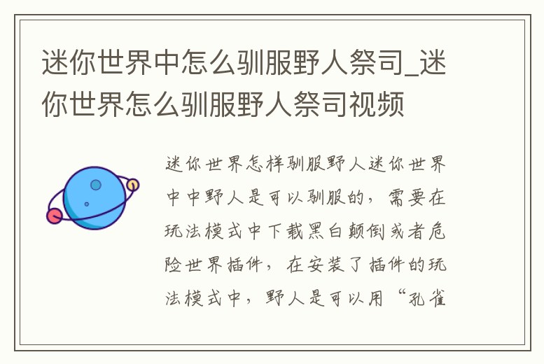 迷你世界中怎么馴服野人祭司_迷你世界怎么馴服野人祭司視頻