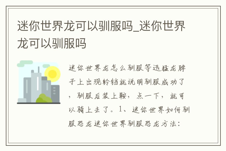 迷你世界龍可以馴服嗎_迷你世界龍可以馴服嗎