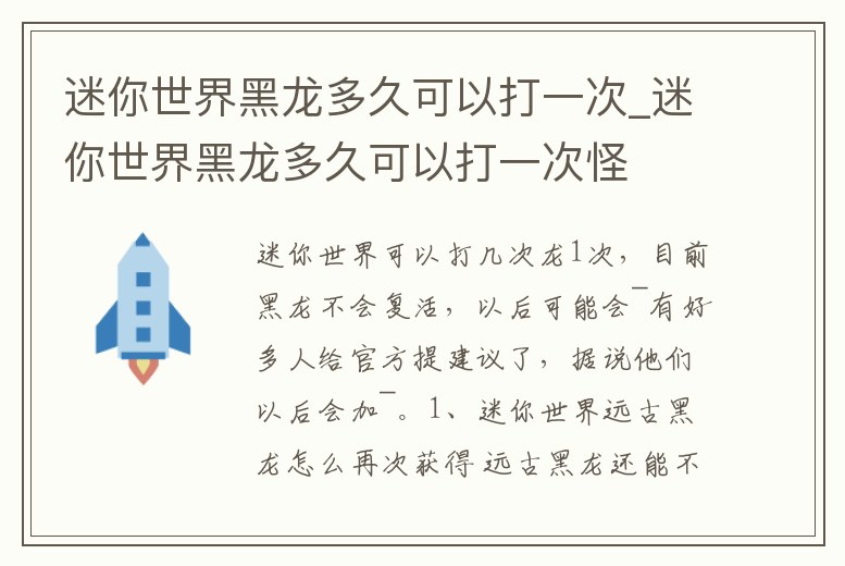 迷你世界黑龍多久可以打一次_迷你世界黑龍多久可以打一次怪