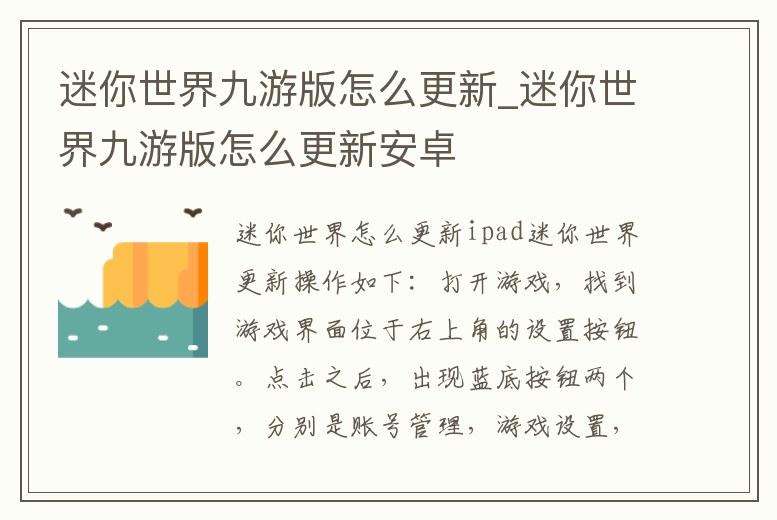 迷你世界九游版怎么更新_迷你世界九游版怎么更新安卓