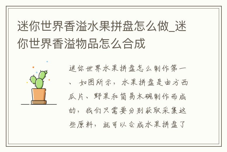 迷你世界香溢水果拼盤怎么做_迷你世界香溢物品怎么合成