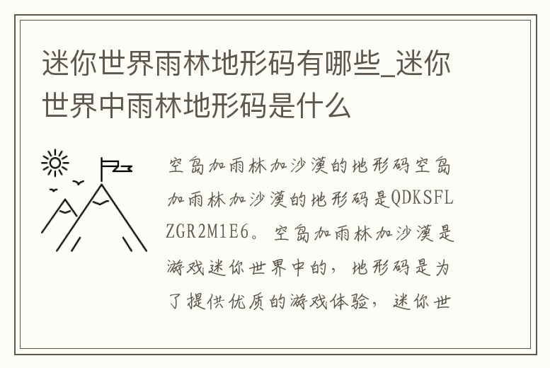 迷你世界雨林地形碼有哪些_迷你世界中雨林地形碼是什么