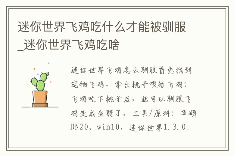迷你世界飛雞吃什么才能被馴服_迷你世界飛雞吃啥