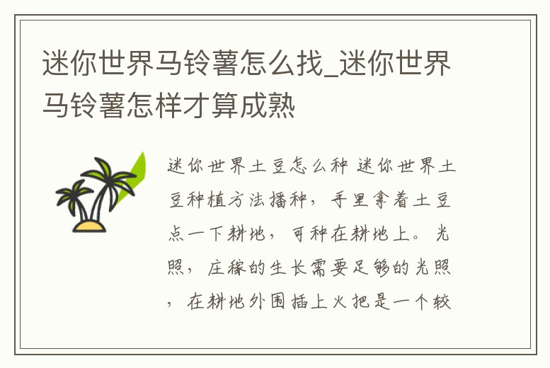 迷你世界馬鈴薯怎么找_迷你世界馬鈴薯怎樣才算成熟