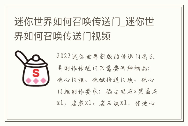 迷你世界如何召喚傳送門_迷你世界如何召喚傳送門視頻