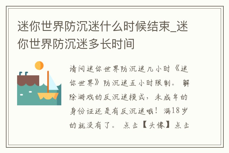 迷你世界防沉迷什么時候結束_迷你世界防沉迷多長時間