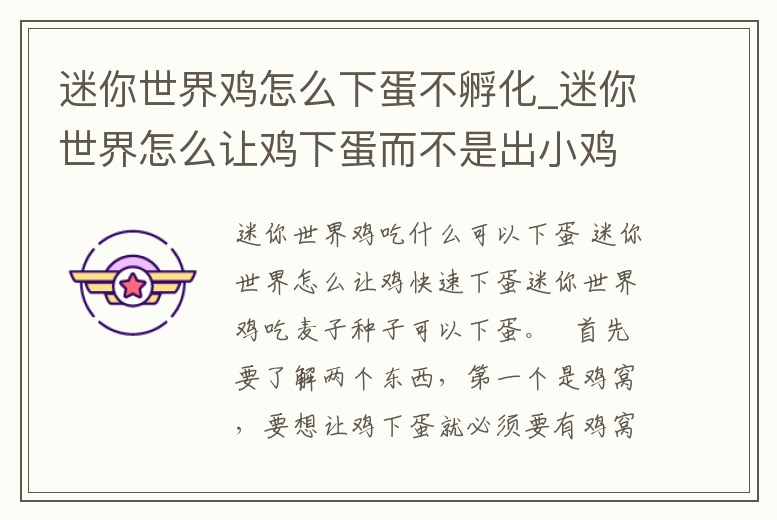 迷你世界雞怎么下蛋不孵化_迷你世界怎么讓雞下蛋而不是出小雞