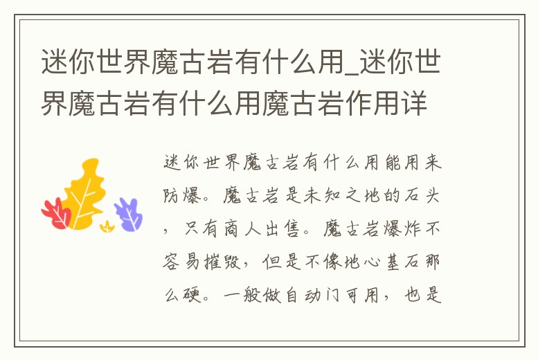 - 迷你世界魔古巖有什么用_迷你世界魔古巖有什么用魔古巖作用詳解