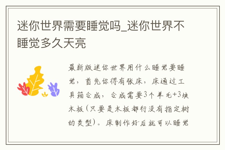 迷你世界需要睡覺嗎_迷你世界不睡覺多久天亮