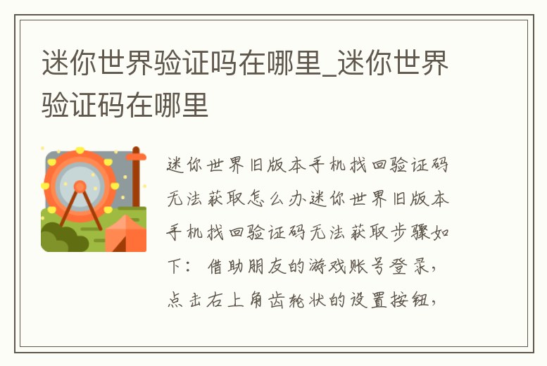 迷你世界驗證嗎在哪里_迷你世界驗證碼在哪里