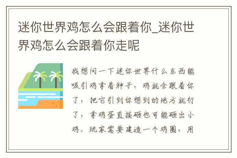 迷你世界雞怎么會跟著你_迷你世界雞怎么會跟著你走呢