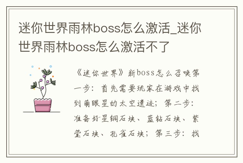 迷你世界雨林boss怎么激活_迷你世界雨林boss怎么激活不了