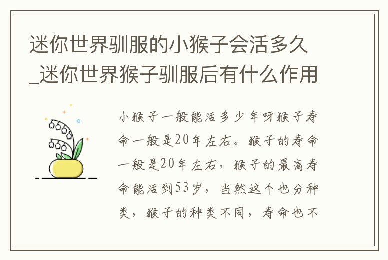 迷你世界馴服的小猴子會活多久_迷你世界猴子馴服后有什么作用