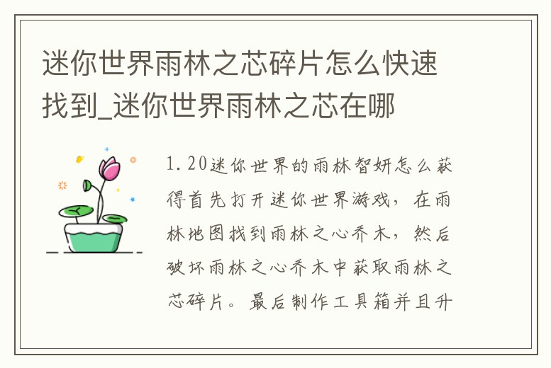 迷你世界雨林之芯碎片怎么快速找到_迷你世界雨林之芯在哪