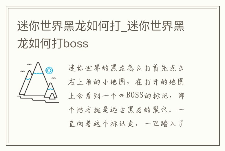 迷你世界黑龍如何打_迷你世界黑龍如何打boss