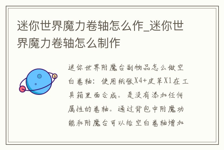 迷你世界魔力卷軸怎么作_迷你世界魔力卷軸怎么制作