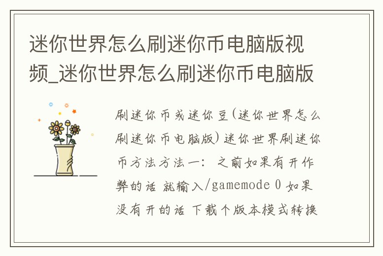 迷你世界怎么刷迷你幣電腦版視頻_迷你世界怎么刷迷你幣電腦版視頻教學(xué)