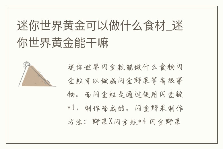 迷你世界黃金可以做什么食材_迷你世界黃金能干嘛