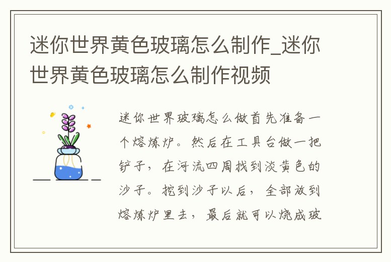 迷你世界黃色玻璃怎么制作_迷你世界黃色玻璃怎么制作視頻