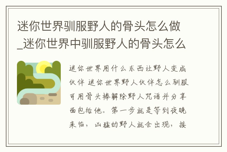 迷你世界馴服野人的骨頭怎么做_迷你世界中馴服野人的骨頭怎么做