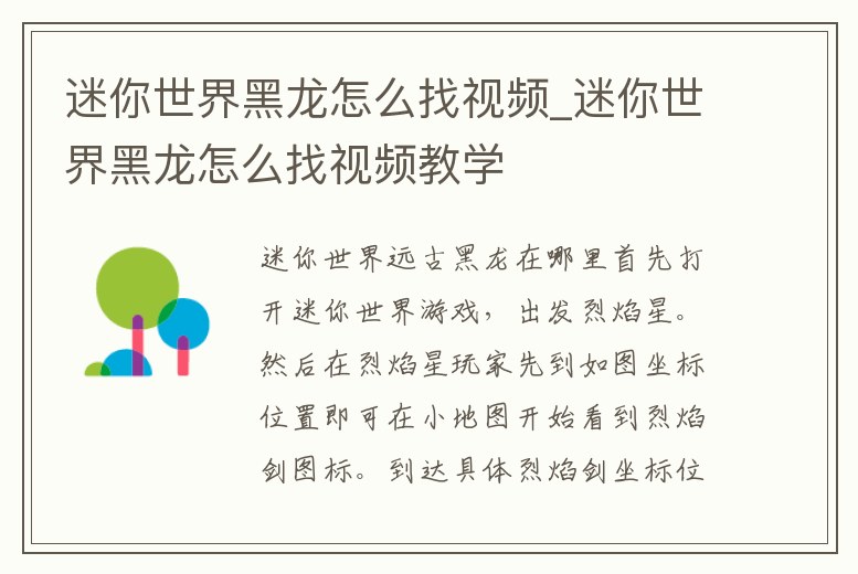 迷你世界黑龍怎么找視頻_迷你世界黑龍怎么找視頻教學