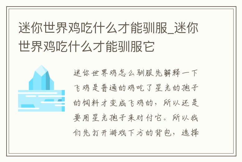 迷你世界雞吃什么才能馴服_迷你世界雞吃什么才能馴服它
