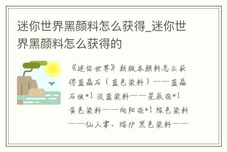 迷你世界黑顏料怎么獲得_迷你世界黑顏料怎么獲得的
