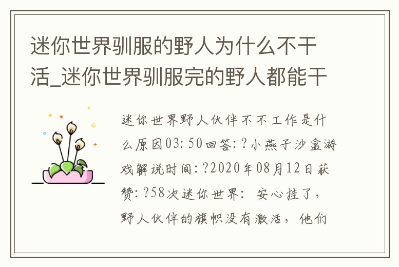 迷你世界馴服的野人為什么不干活_迷你世界馴服完的野人都能干什么