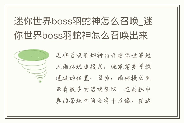 迷你世界boss羽蛇神怎么召喚_迷你世界boss羽蛇神怎么召喚出來