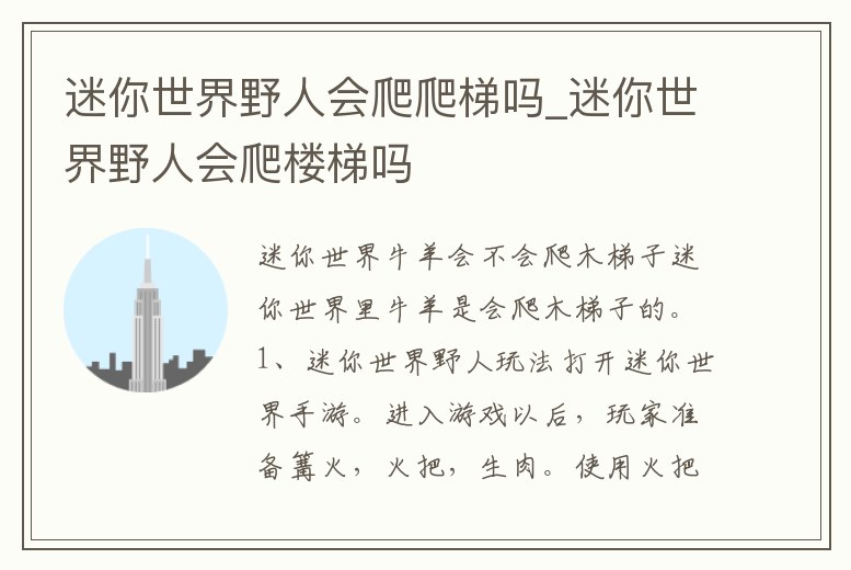 迷你世界野人會(huì)爬爬梯嗎_迷你世界野人會(huì)爬樓梯嗎