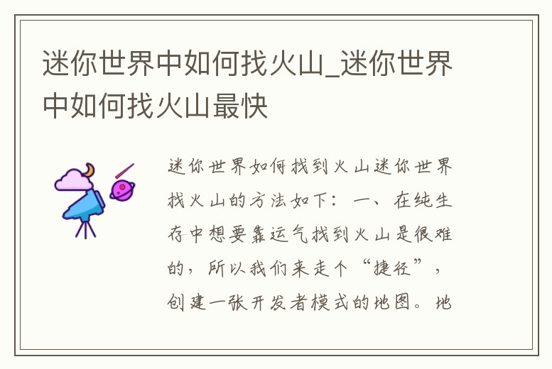 - 迷你世界中如何找火山_迷你世界中如何找火山最快