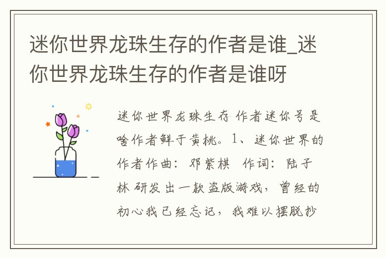 迷你世界龍珠生存的作者是誰_迷你世界龍珠生存的作者是誰呀