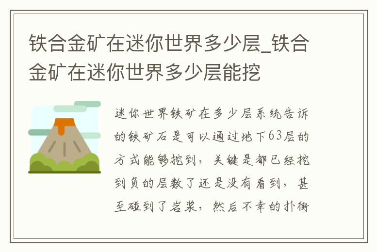 鐵合金礦在迷你世界多少層_鐵合金礦在迷你世界多少層能挖