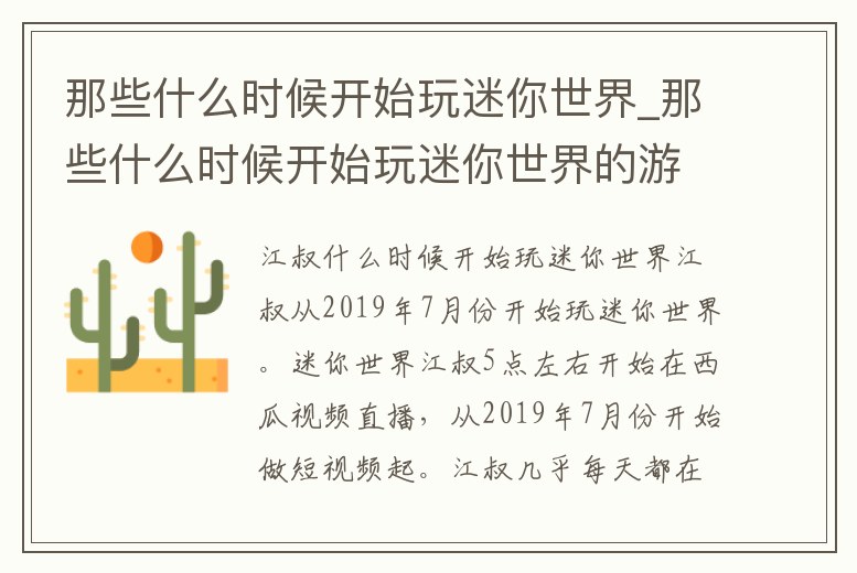 那些什么時候開始玩迷你世界_那些什么時候開始玩迷你世界的游戲