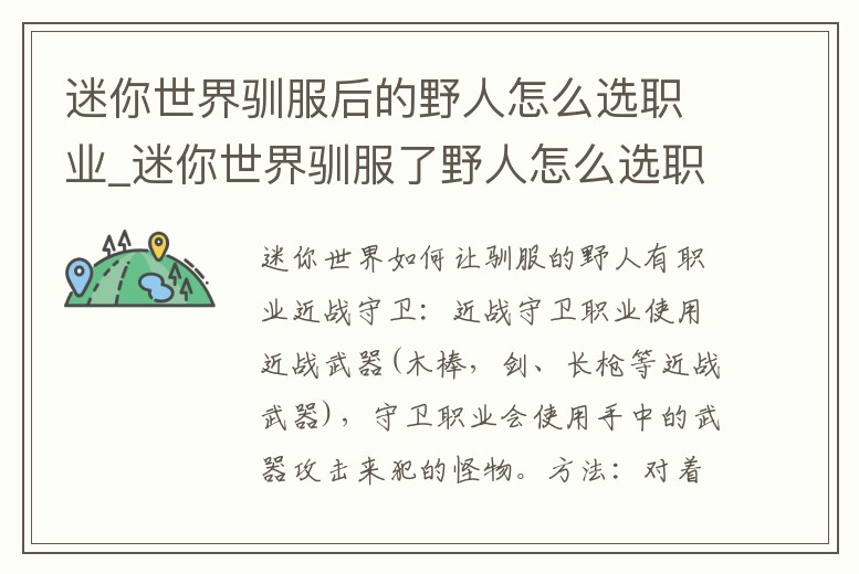 迷你世界馴服后的野人怎么選職業(yè)_迷你世界馴服了野人怎么選職業(yè)